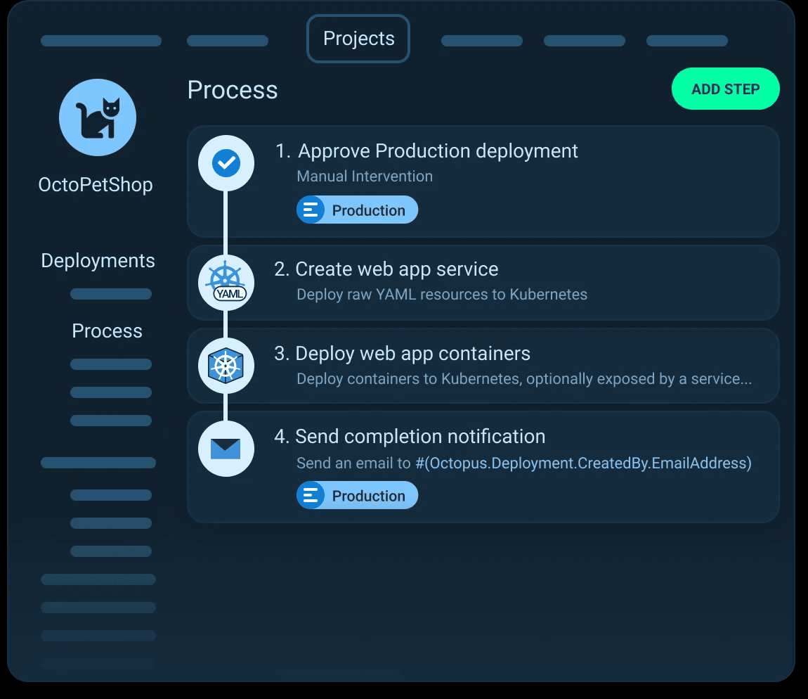 Octopus Deploy es una plataforma de automatización de activación completa que soporta múltiples lenguajes y frameworks. Proporciona una interfaz centralizada basada en la web para gestionar tus procesos de instalación, permitiéndote definir pasos de configuración, variables y entornos. Octopus Deploy se integra perfectamente con los servidores de compilación populares y soporta características avanzadas como la implementación gradual y las reversiones automáticas.